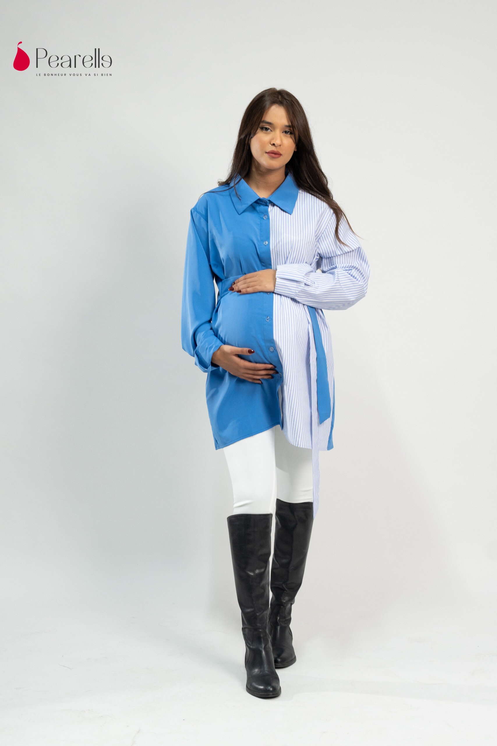 Chemise Bicolore Rayée – Grossesse Chic Élégante et confortable.